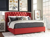 BR13SR - Bamboo night stand, bed frame, and upholstered bed with tufted headboard in the SC41 showroom