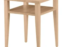 SA04 - Transitional Shaker nightstand in brown maple featuring single drawer chrome pull open shelf tapered legs styled with industrial task lamp and white hydrangeas
