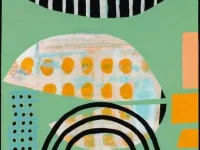 DC33SR - Green blown glass vases, handcrafted wooden wooden candle sticks, abstract oil on canvas paintings, relaxing carved wooden face