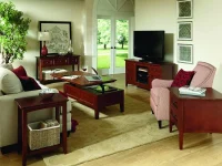 LR15WW - Room scene featuring cherry wood furniture - coffee table with inner storage and liftable top - entertainment stand - end table - traditional sideboard with storage drawers