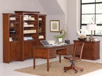 LR21WW - Rich cherry finish tripplet traditional wooden bookcases with adjustable shelves and closed cabinets - also classic chest with multiple drawers, flanked by single-door cabinets