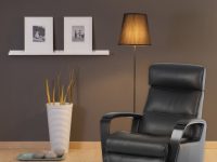 Rowe - Beige Patterned Armchair With Plush Cushions Near Floor Lamp And White Vase With Red Branches, Home Decor