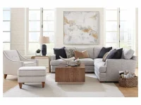 Rowe - Beige Sofa With Patterned Armchairs And Ottoman Under Large Mirror In Home Decor Setting
