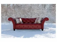 LR63RW - Comfortable living room setting with grey tufted fabric sofa, red padded white painted chair, and clear living room table