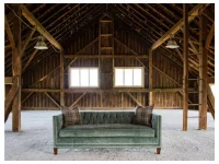 Rowe - Green Velvet Sofa With Plush Cushions Under Wooden Console Table Near Large Windows Home Decor