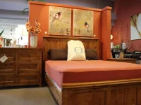 SA19 - Rustic craftsman storage bedroom set in distressed pine featuring panel bed with footboard drawers matching case pieces iron hardware and sage accents