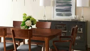 DR18SA - Hardwood table buffet and chairs cool smooth surfaces rich brown hues traditionally styled