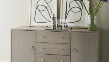 LR14GC - Contemporary solid wood sideboard ash gray finish ring pull hardware drawers and cabinet storage