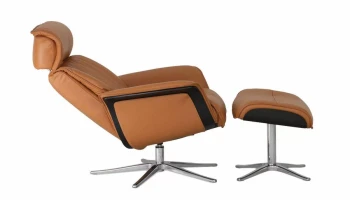 IMG Norway terracotta leather power recliner with plush overstuffed design wide comfortable seat tall cushioned back and thickly padded armrests