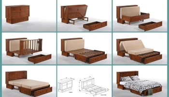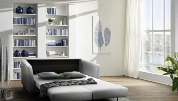 Rowe - White Sleeper Sofa With Pull-Out Mattress Near Wooden Dresser And Wicker Basket, Home Decor