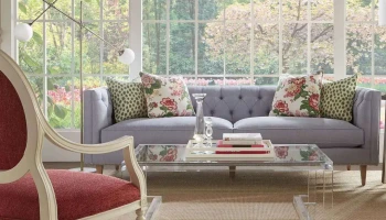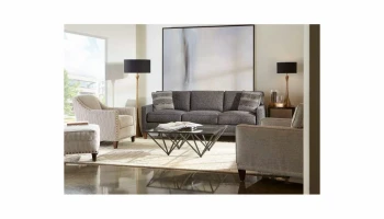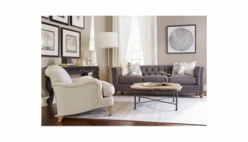 Rowe - Light Grey Sofa With Plush Cushions Near Large Windows, With Wooden Coffee Table, Home Decor, Upholstery